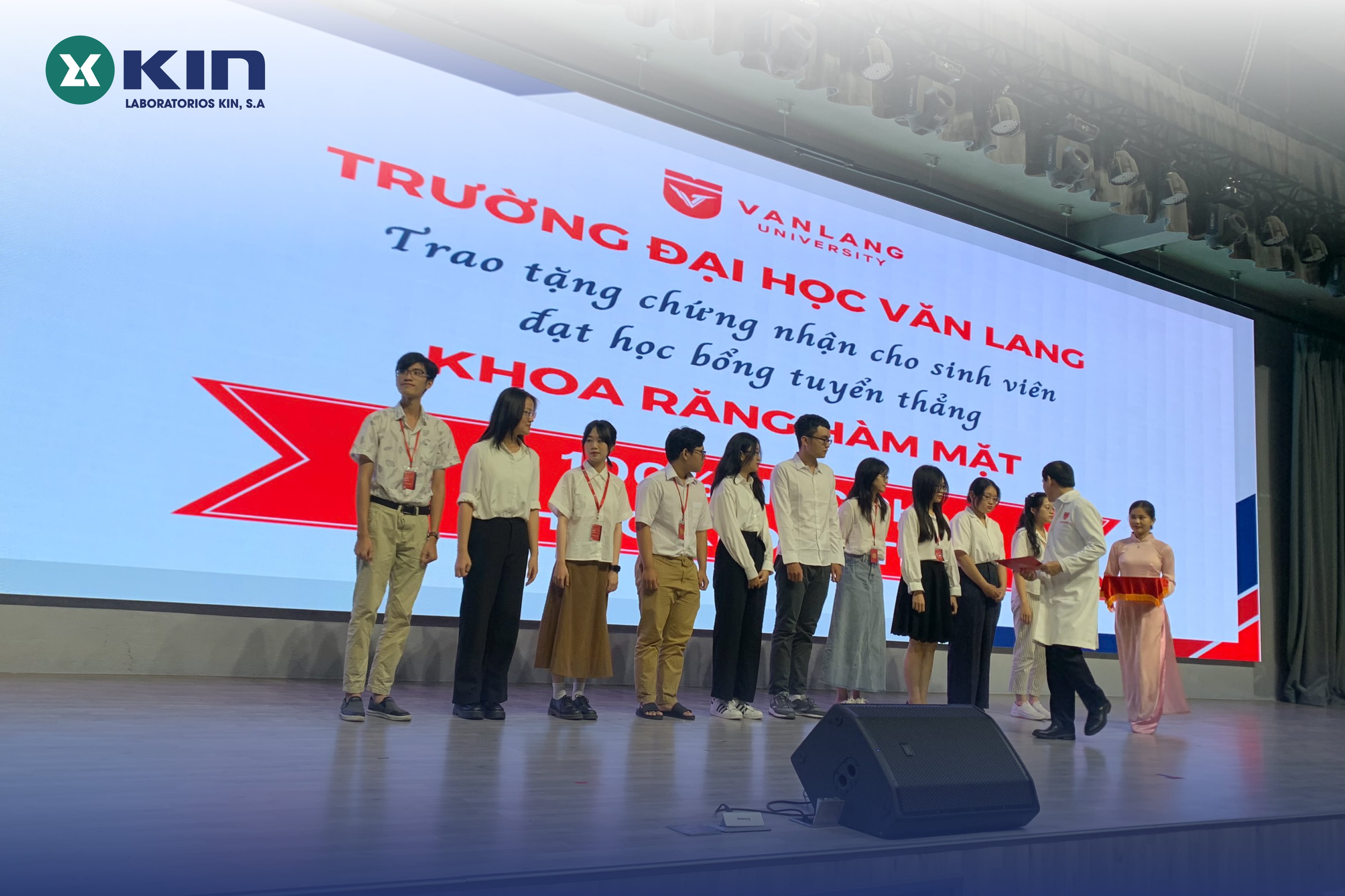 KIN Việt Nam vô cùng hân hoan khi được chia sẻ niềm vui cũng như đồng hành và tài trợ những suất học bổng, quà tặng cho các bạn tân sinh viên đạt thành tích thủ khoa. Hy vọng những phần quà nhỏ này sẽ góp phần biểu dương và khích lệ các bạn sinh viên có thành tích tốt trong phong trào thi đua, góp phần khẳng định tên tuổi Khoa Răng Hàm Mặt trong cộng đồng sinh viên Văn Lang.